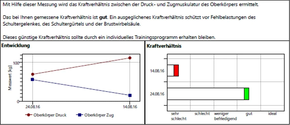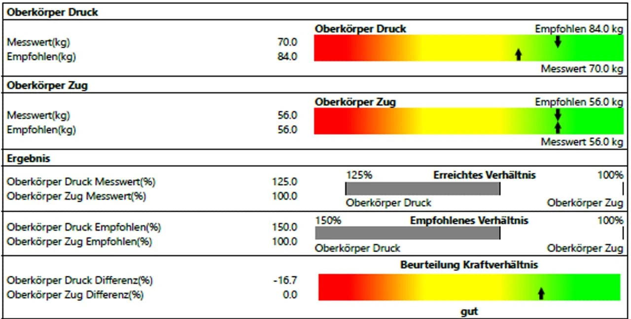 Aufgrund wissenschaftlicher Studien kennt man die optimalen Muskelkraftverhältnisse. Diese erlauben die Bewertung des gemessenen erreichten Verhältnisses in diesem Falle zwischen den Beuge- und Streckmuskeln des Rumpfes.
