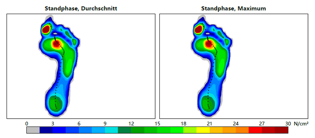 Diese erfasst mithilfe von kapazitiven Drucksensoren die statische und dynamische Druckverteilung unter den Füßen beim Stehen und Gehen.