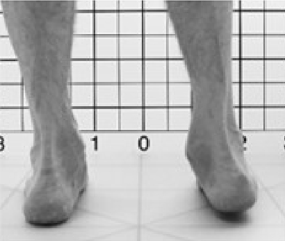 Wie man aber auf den Fotografien sehen kann, stimmt das nicht, weil dieser Patient keinen Hohlfuss, sondern einen Knickfuss hat. Die Abknickung führt zur Anhebung des äusseren Fussrandes, welcher deswegen keinen Druck erfährt.