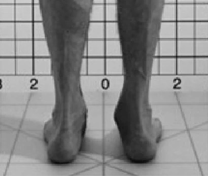 Eine interessante Darstellung der Druckverhältnisse unter dem Fuss liefert dieser Fall eines Patienten mit einer massiven Fussdeformität, eines sogenannten Pes valgus oder Knickfuss. Interessant deshalb, weil die aufgezeichnete Druckverteilung häufig fehlinterpretiert wird.