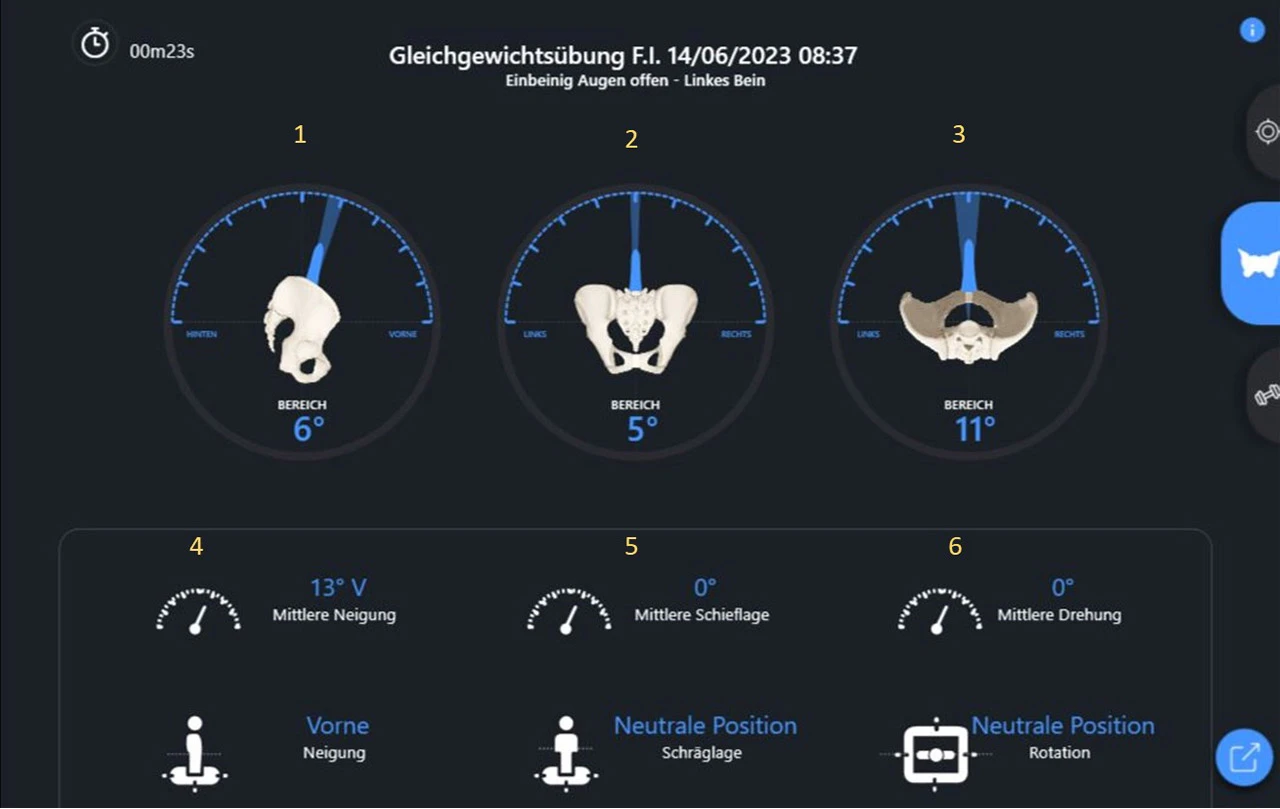 Auf der Seite Beckenbewegung werden folgende Parameter angezeigt: