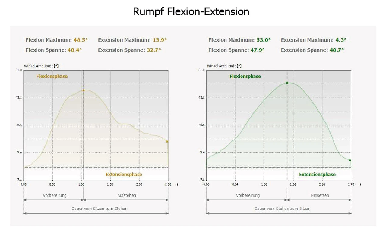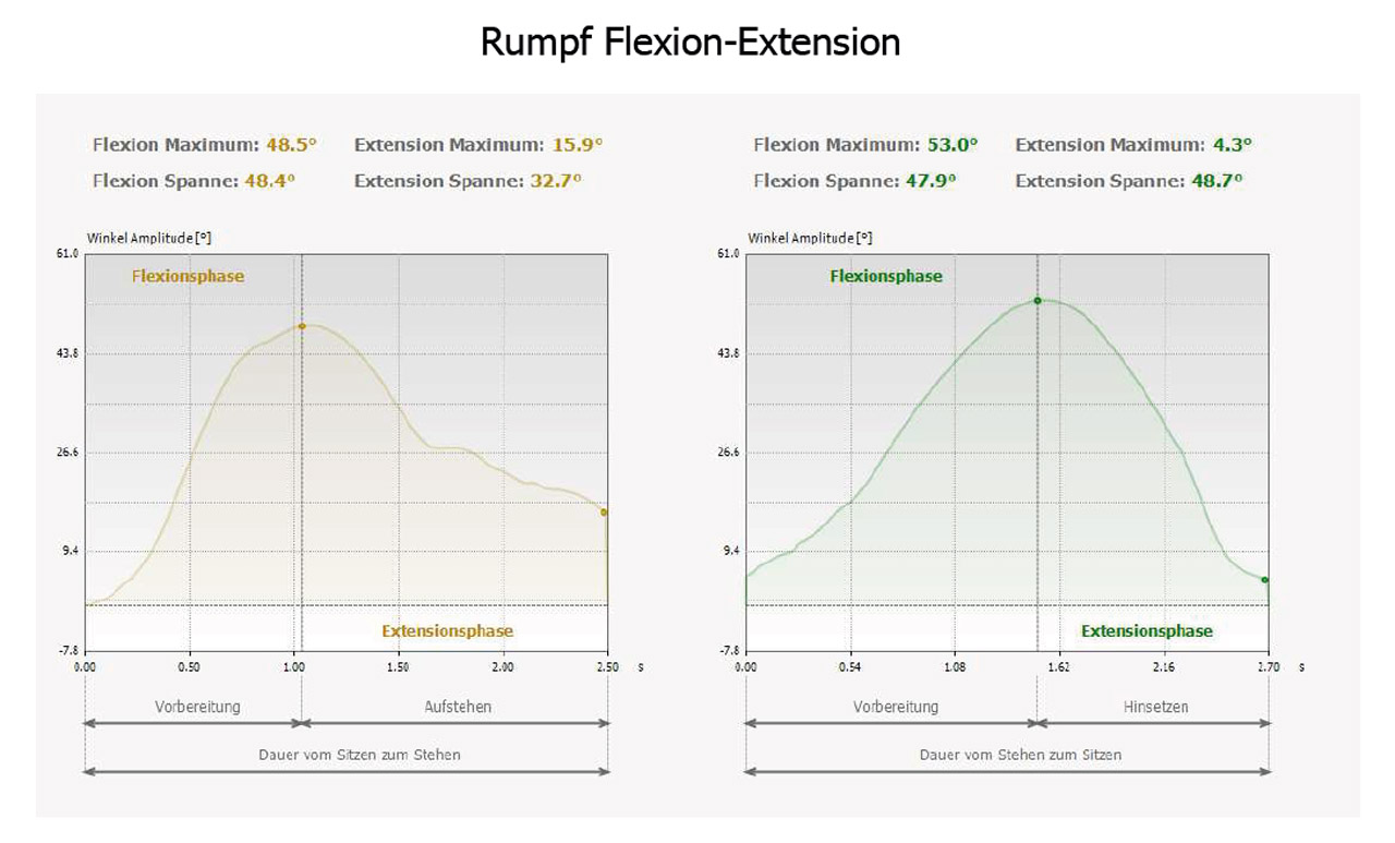 Ausserdem werden die Rumpfbeugung und – Streckung währende der Dauer des Aufstehens und Hinsetzens gemessen.