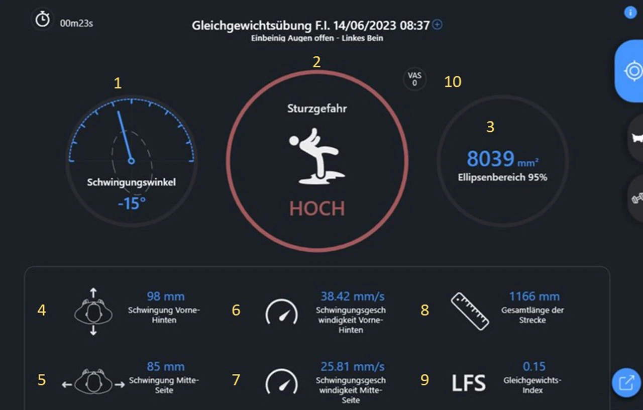 Die Ergebnisse unserer Tests liefern wertvolle Informationen über das individuelle Gleichgewichtsverhalten und können dazu beitragen, das Sturzrisiko zu beurteilen und geeignete therapeutische Interventionen zu planen.
