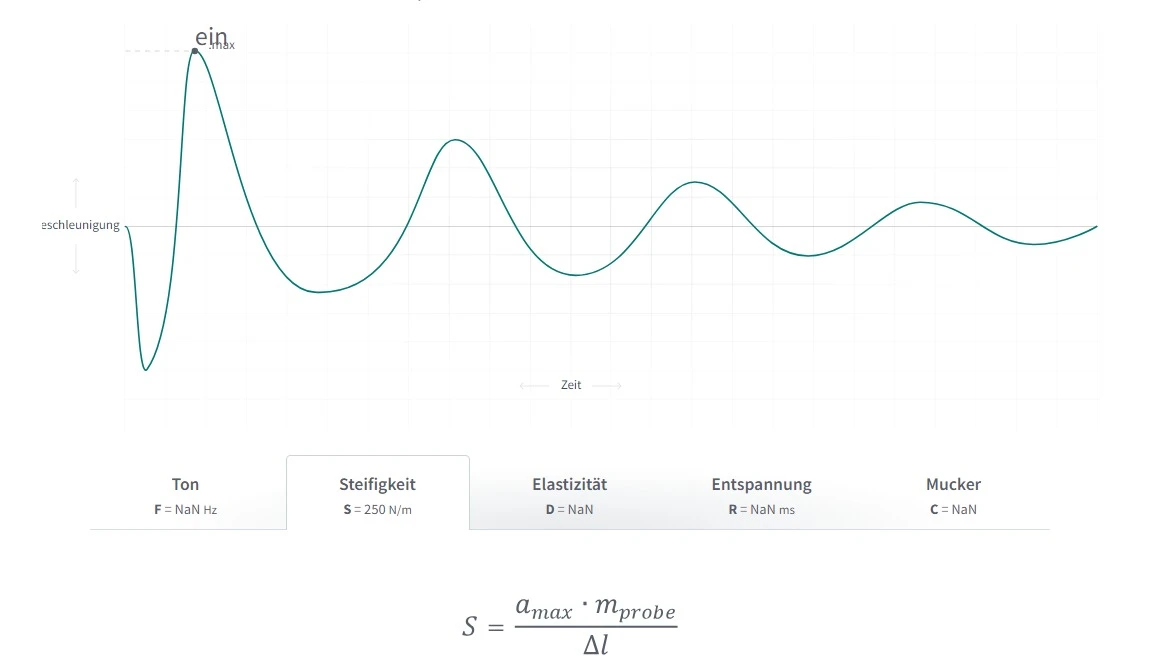 Über einen mechanischen Präzisionsimpuls wird die dynamische Gewebeantwort in Form von physikalischen Verschiebungs- und Oszillationsbeschleunigungssignalen aufzeichnet und daraus die Parameter zur Charakterisierung des Spannungszustands, der biomechanischen und viskoelastischen Eigenschaften berechnet.