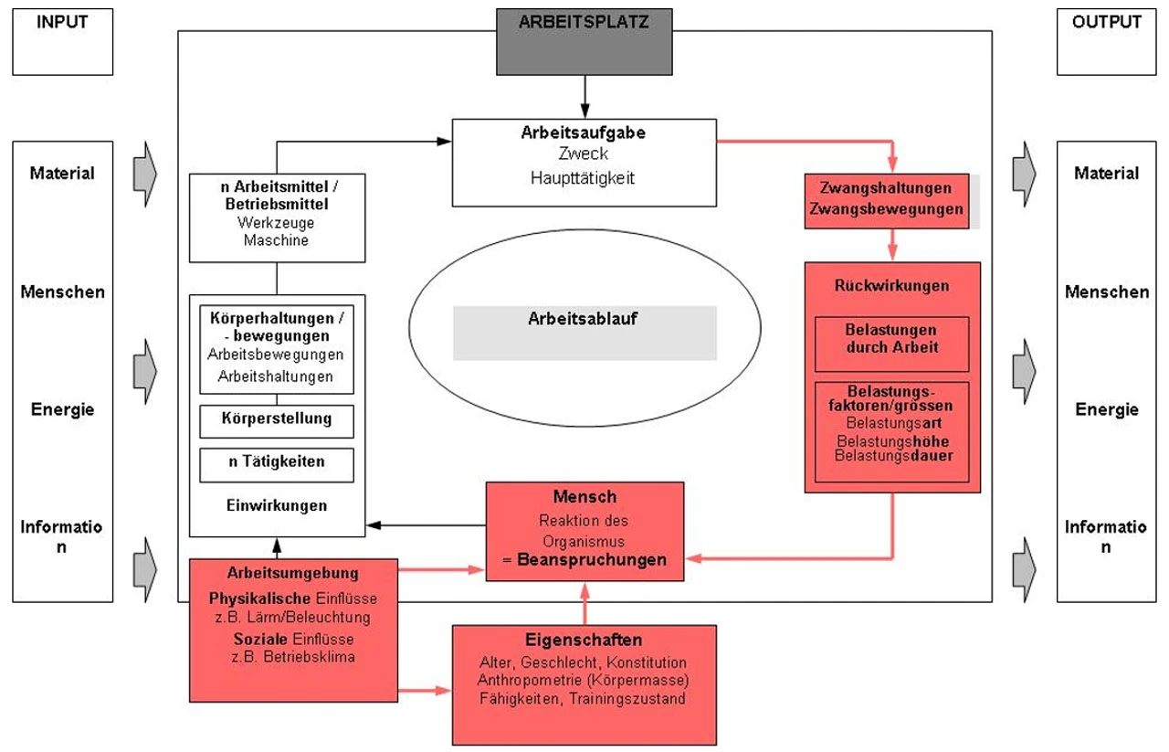 So entstehen unterschiedliche Belastungen, die auf den Menschen zurückwirken, ihn beanspruchen (Belastungs-Beanspruchungs Modell der Ergonomie).