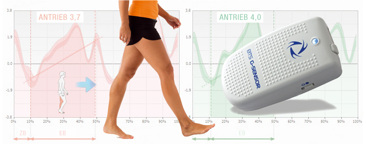 Die präzisen Messungen mit dem G-Walk System erlauben das Erkennen subtiler Abweichungen des Gangbildes, die mit dem blossen Auge schwer wahrnehmbar sind.